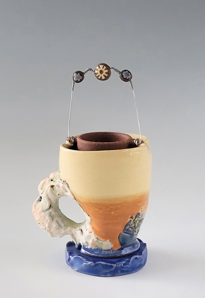 I teach ceramics and create one of a kind pieces of pottery – mostly useful objects with a lot of thought and time put into them. I love to tell stories through drawing and this method of communicating often creeps off the paper and onto my ceramic work.